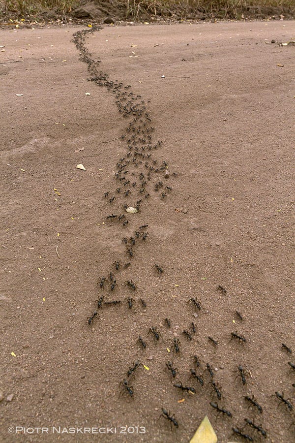 Overall, army ants are a force to be reckoned with, often causing ecological destruction en masse in their wake. These ants are ruthless and will do anything for food. With colonies growing in the millions, they are an unstoppable force that exert massive influence on their ecosystems. Like warlords in a civil war, these ants call the shots and enforce their own rules, paying no mind to what is best for others.